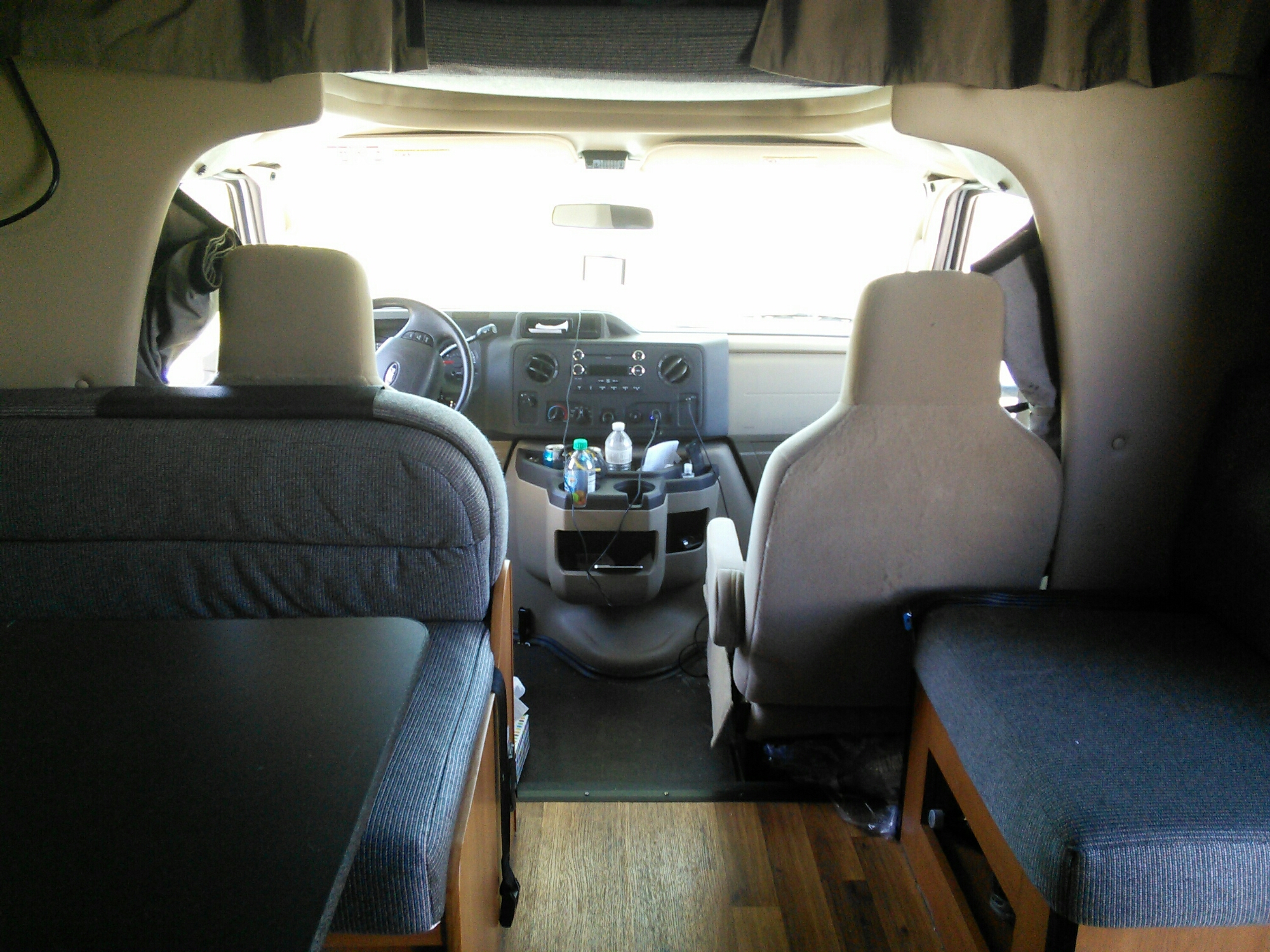 We’ve had many requests for more photos of the rv. Earlier we’d posted a couple pics of the “galley” and the nook table/bunny bed (scroll WAY back to see those). This rv is only 19 feet long – there’s not much more to it! But here are a few more photos so you can get a better idea of the layout: