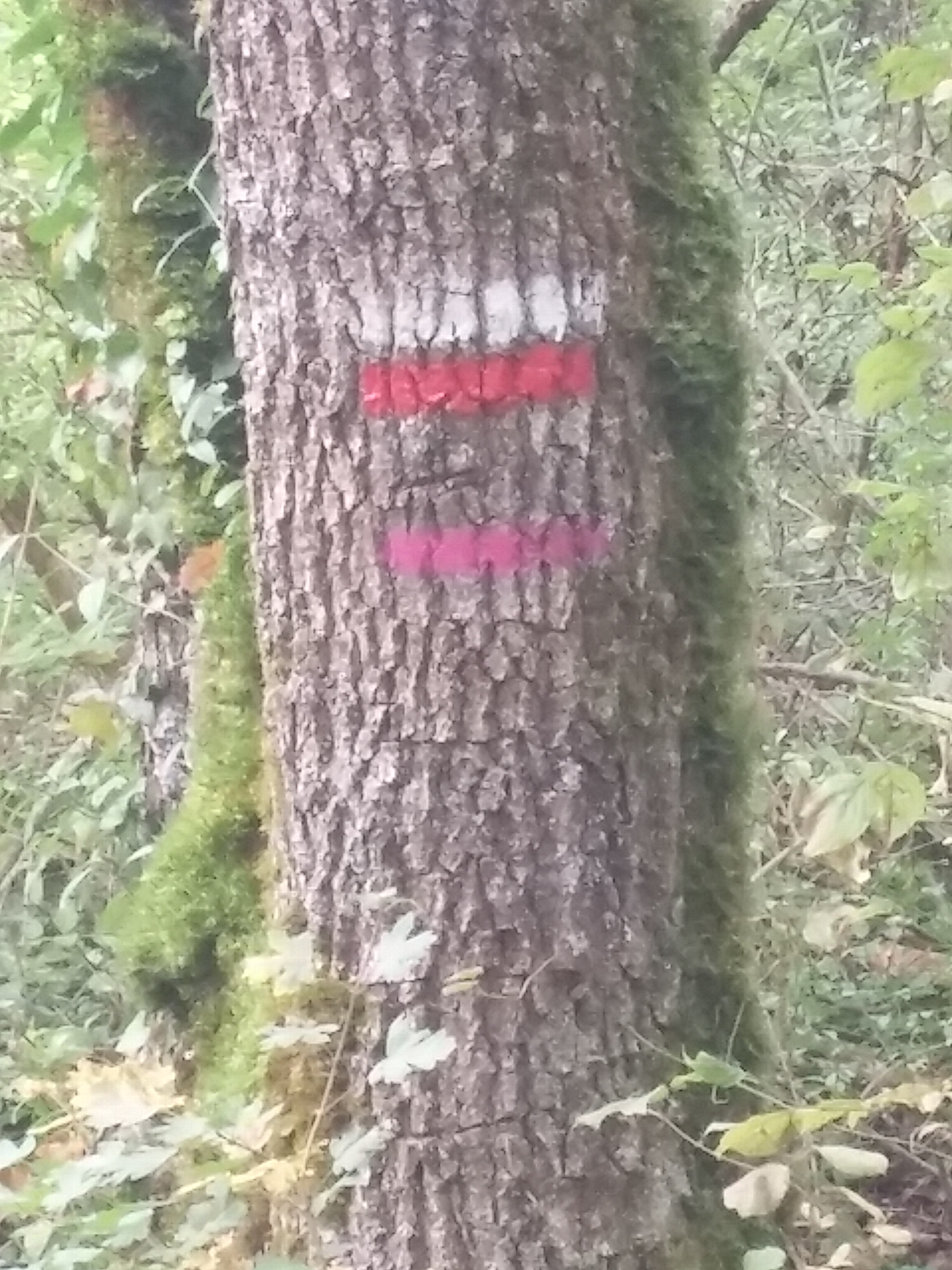 So the white and red lines meant that I was on the right trail and to go straight. When the lines were crossed it meant that you have gone the wrong way and need to turn around.