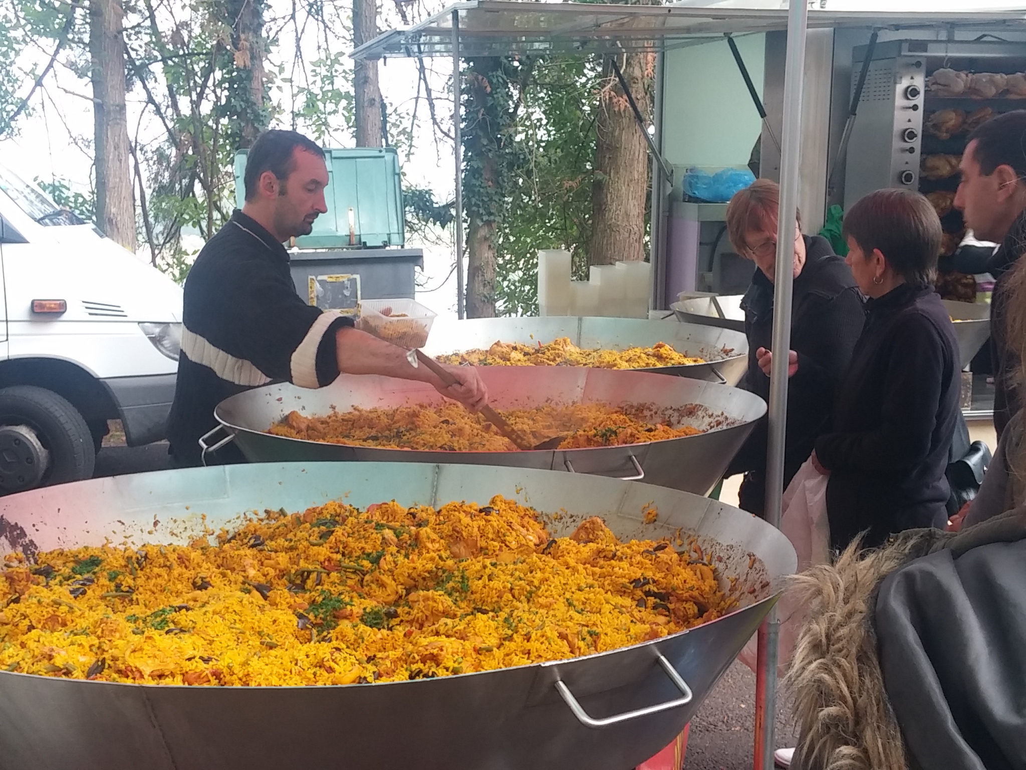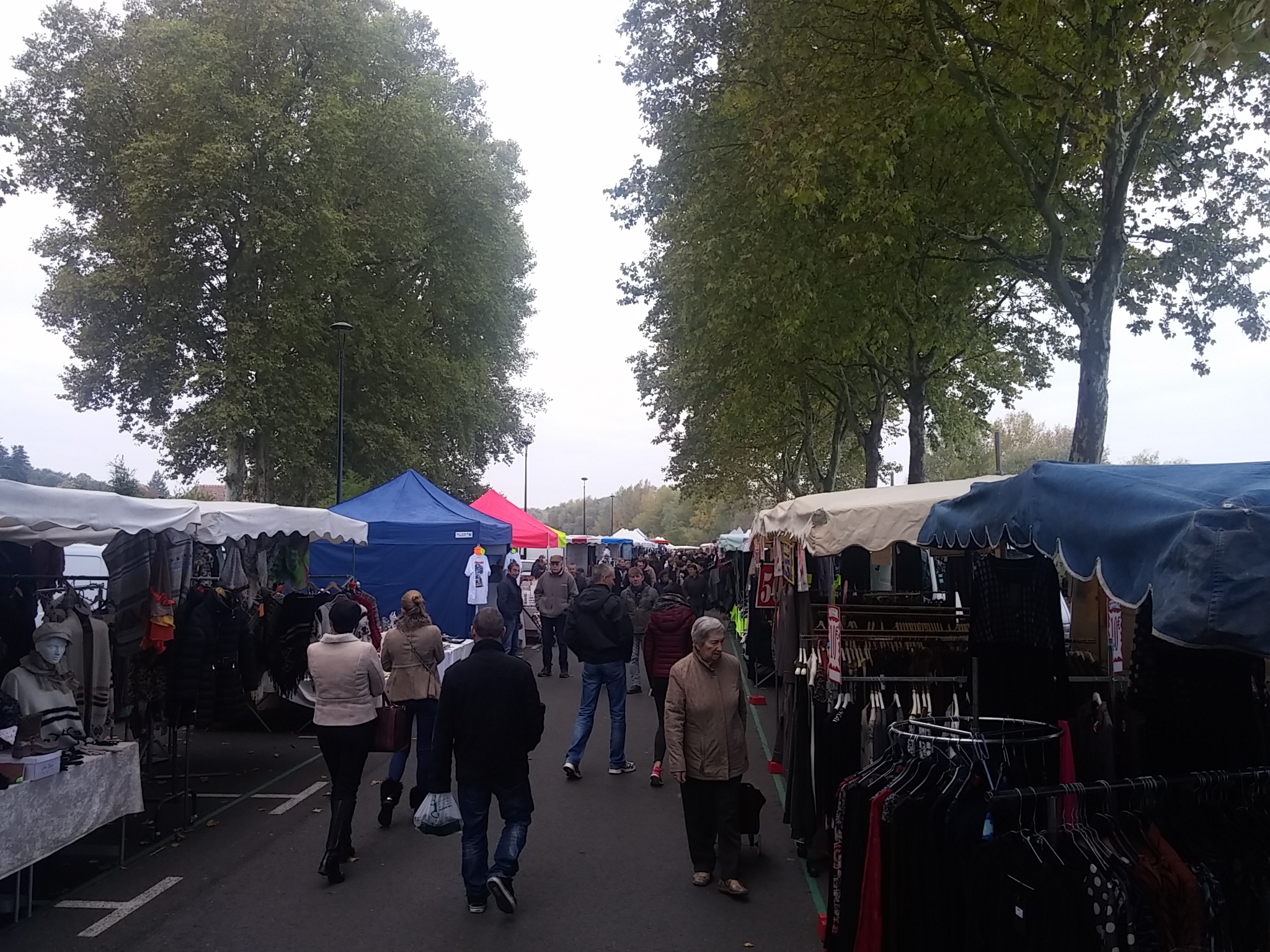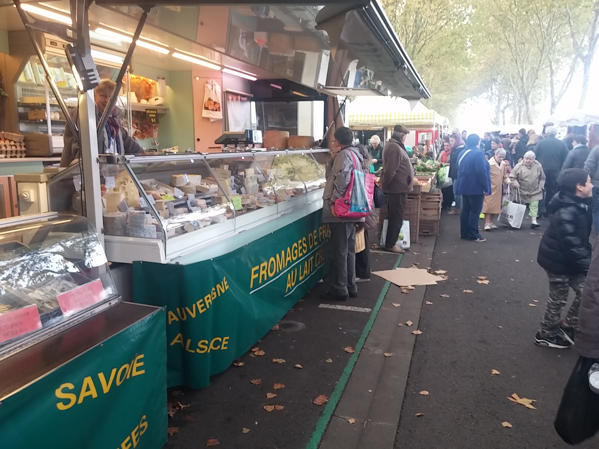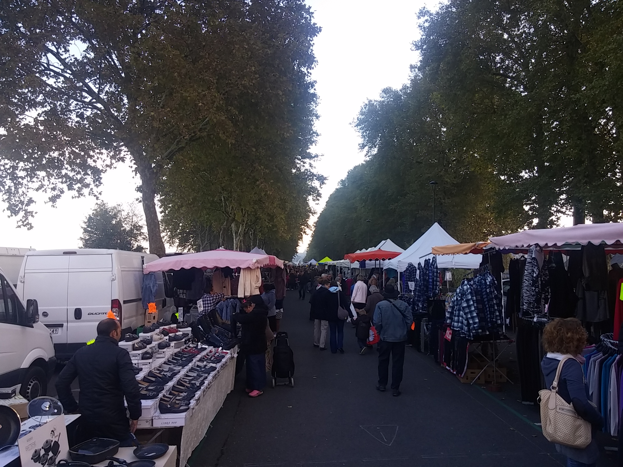 While in Montbard on Sunday everything is closed.  In a tourist town like Amboise everything is open because it is a big tourist day.  As soon as we left the apartment the city was alive with people in the streets.  Most of them going to or from the “Market”.  The Amboise market is HUGE.  While markets like this in the states are used primarily for small farmers to get their good s to the public.  The Market in Amboise is a way for entreprenuers of all kinds to get all kinds of goods to consumers.  You can buy any kind of food you want,  Also anything from hats to jackets or pants.  Bunny even noted that one booth reminded her of the dollar tree.  There was also a booth selling womans sexy lingerie (insert joke here).  I would estimate that the market went on for 6 blocks and there were 2 aisles with booth on both sides.