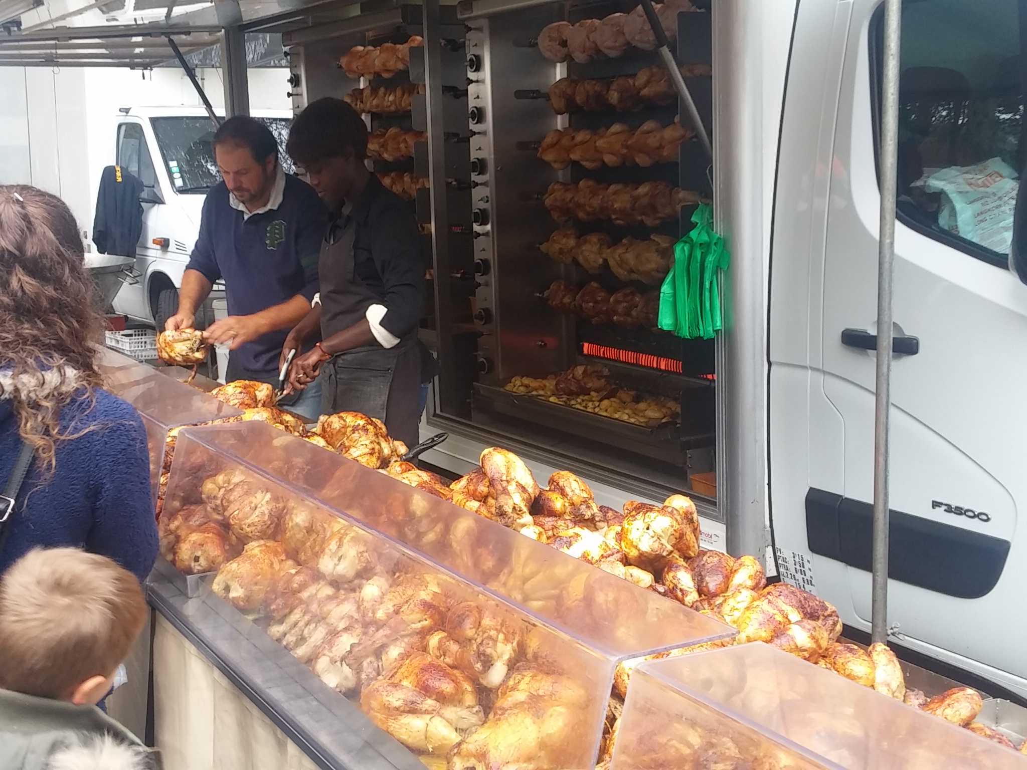 We bot a whole roasted chicken from here for 12 euros …. a little expensive …