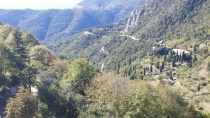 The plan today was to visit 2 of the “Les Plus Beaux Villages de France”. One of the focuses of our visit to France is to visit a large number of the 100 “Most Beautiful Villages of France”. The goal today was to see Saint-Agnes and Coaraze. Well the turn off from A8 highway to Saint-Agnes is only 5 miles from the Italian border. Well we all of a sudden found ourselves going over the border into Italy. Obviously we missed a turn. We had to go another 5 miles before we found an exit. We took the exit and paid the $ 3.00 toll and pulled over to figure out what just happened. I immediately figured we could just take the road going back over the highway and then find the on ramp. Thats how it works in the US .. right … Well we found ourselves going higher and higher into the countryside and the road getting narrower and narrower. It becomes apparent that we were going higher and farther away from A8. So we turned around and got back to the area we exited off A8 and determined that the on ramp back onto A8 split into a West bound on ramp also. We were on our way back to France.