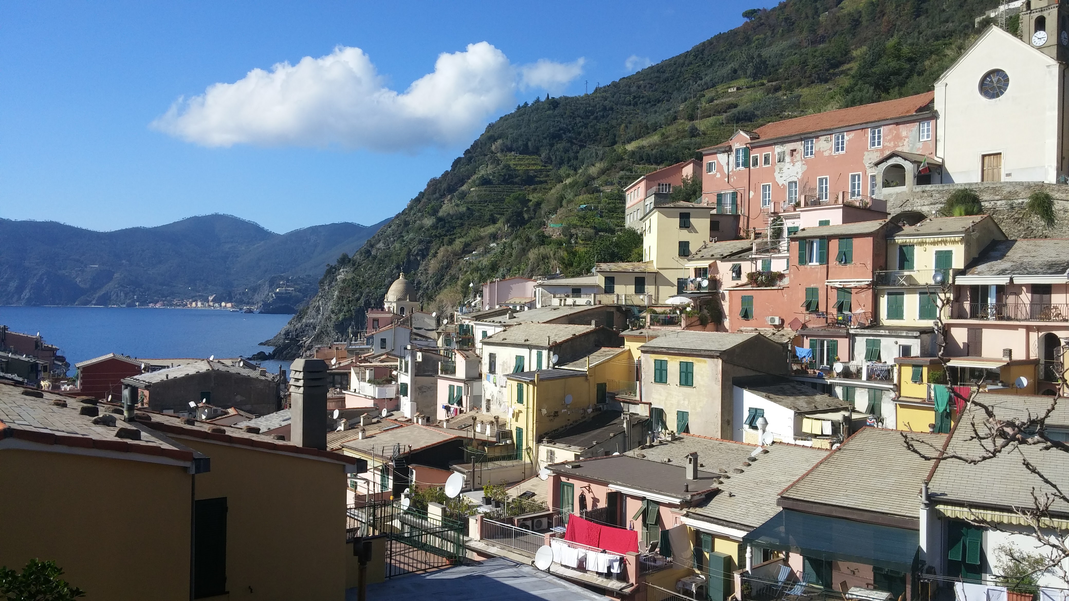 Before coming over to France on this trip one of my plans while Bunny was busy in her class was to get to an area of Italy called Cinque Terre. It is a series of little towns (actually 5 little towns which accounts for the name) along the western coast of Italy. It is only a 3 1/2 hour drive from Nice. So on Wednesday Oct 11th I decided I would try to make it over there. Bunny went off to calls and I packed up and started out on my way to Cinque Terre. I really wasnt confident I would make it or where exactly I was going but I was going to drive there and see whatever I could see. My destination was a town called Vernazza. The 2nd town in the line from the northern most town. My plan was to walk along the trail which connects all of these towns for as long as I could. I was planning to come baack that evening but if it got too late I would just pull over and sleep.