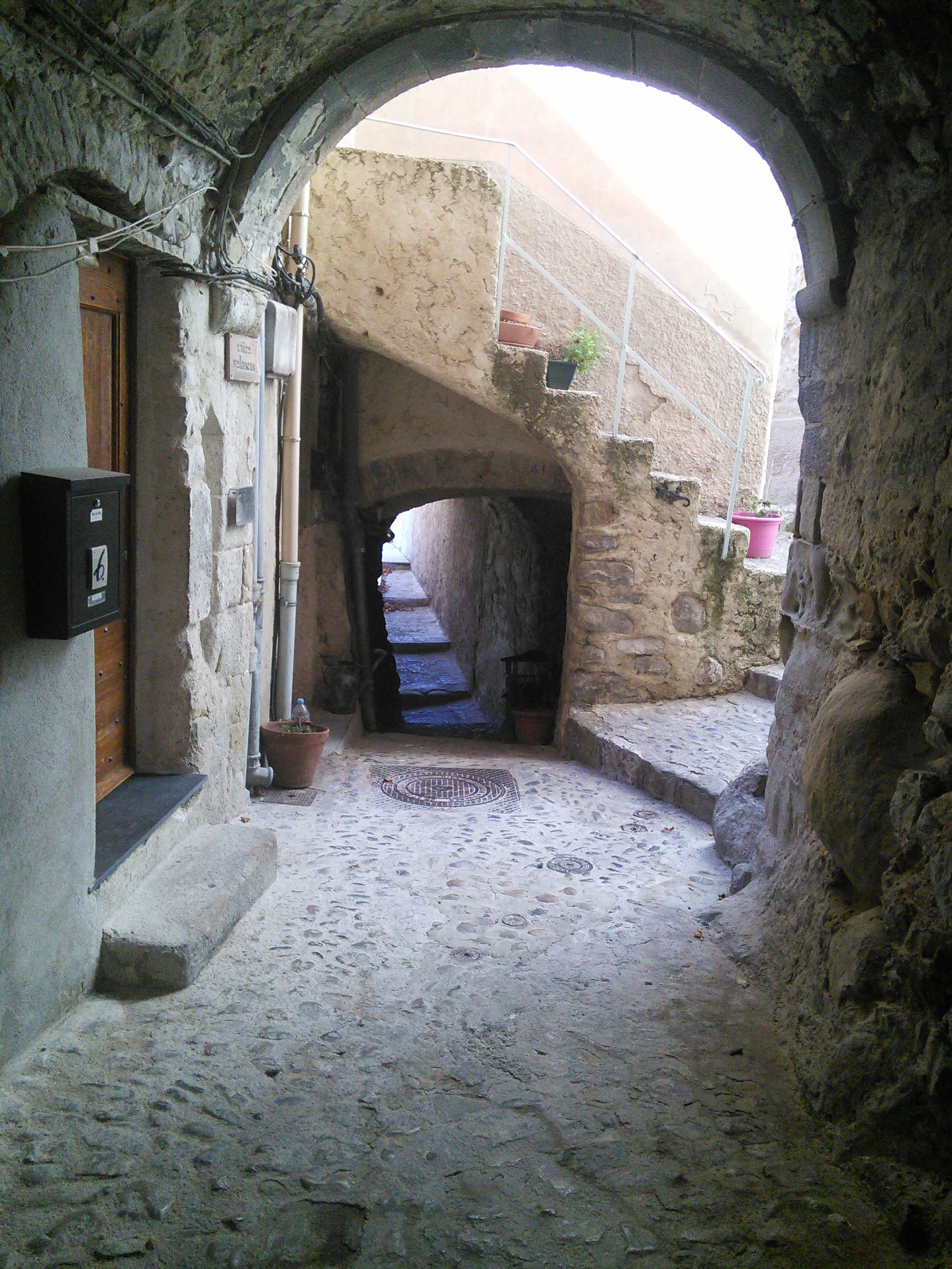 The second town we visited today was Coaraze. It is directly north of Nice by an hour. Of course once again on those small narrow and winding roads. The information on the internet indicated that the town was not well kept up. Meaning that it has not been updated. What we found was an incredibly authentic little French village. It was high in the mountains and had a great corridor winding its way thru the town. We walked for quite a ways within the town in the stairs intertwined within the apartments and buildings of the town. We eventually wound our way up to the top which was where the church was located. It was a wonderful little treasure. We wound our way down and split a Plat de Jour and hit the road back to Villefranche. Really tired from a day of touring.