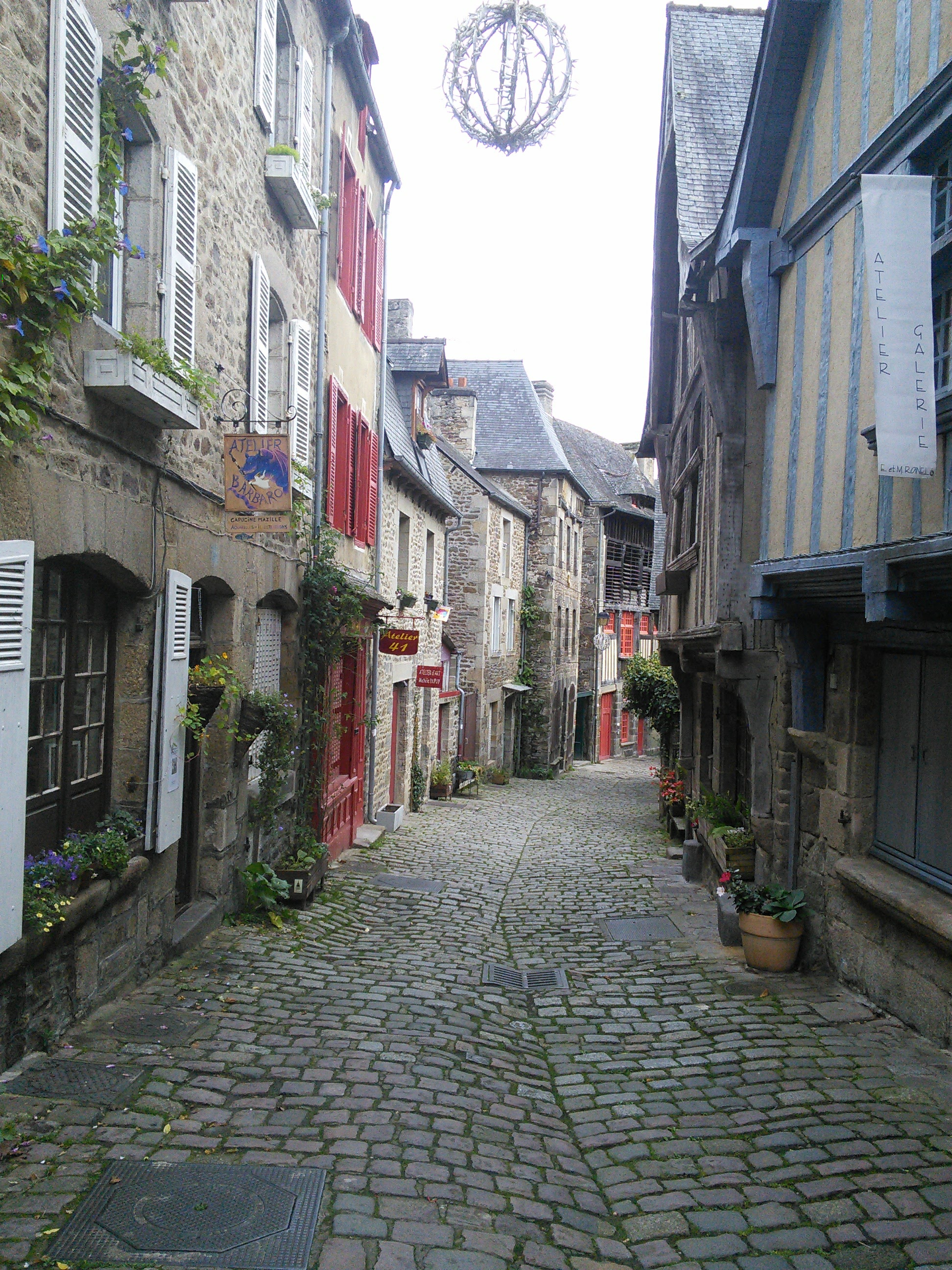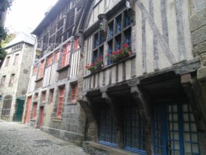 On Thursday we (Marty, Greta and Bunny) headed north to Dinan which we had heard (and read) had a great marche (open air market) on Thursdays and was a spectacular medieval town to boot. We were not disappointed! The market was a blast (although we got there a bit late to really stroll leisurely through it before the vendors started packing up). We stopped for a pleasant plat du jour lunch of salad, roast pork and frites and then wandered around the town. So amazing! And the “amazing” part went on and on and on. The weather was perfect.