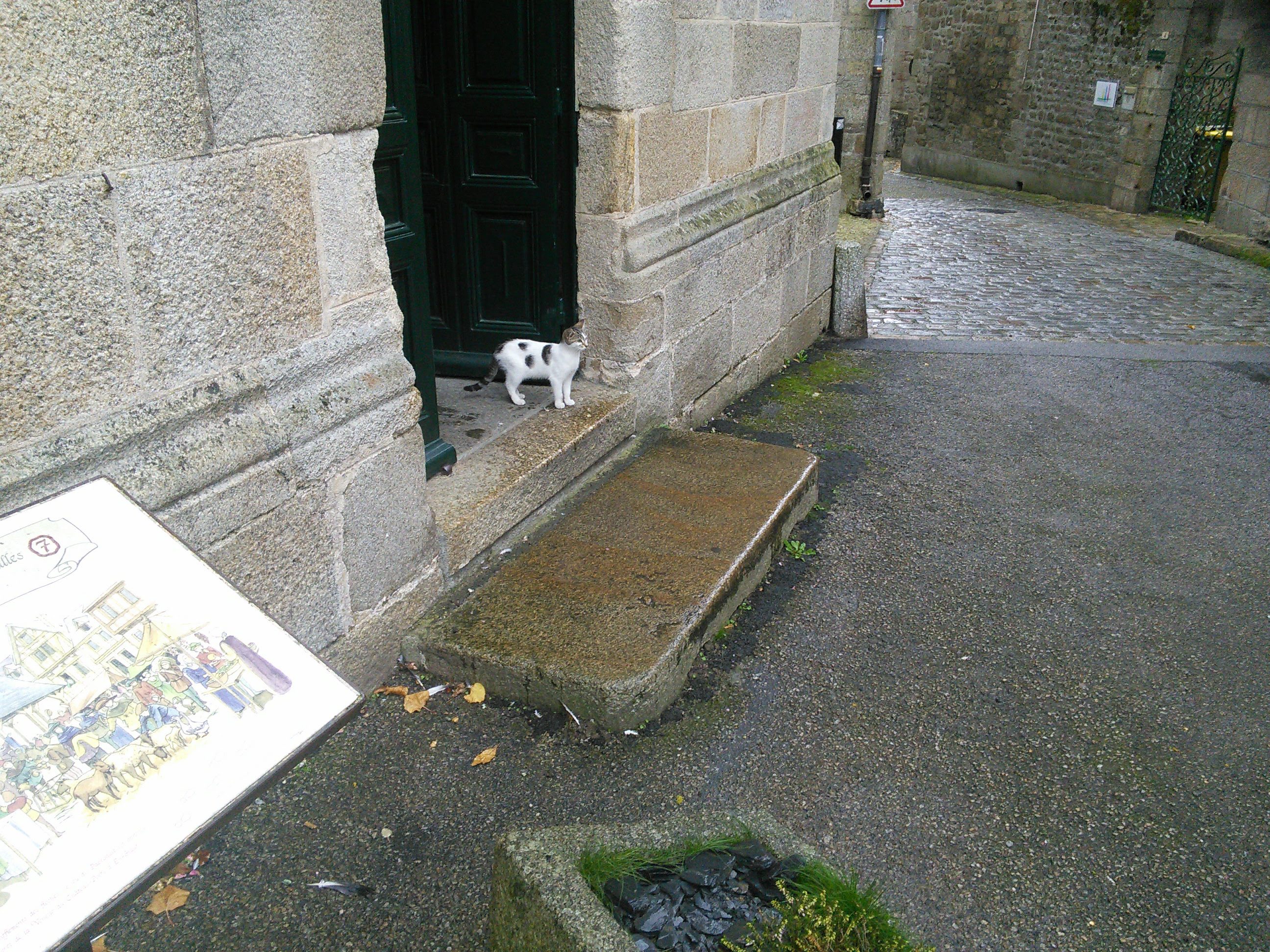 We devoted so much time to Dinan we almost forgot that we had another town to visit – another Plus Beaux Village about a half hour away called Moncontour-de-Bretagne. We arrived there late. It was (predictably) very old and quaint with serpentine cobblestoned streets. But the piece de resistance for Bunny was the cute cat that kept popping up throughout the town. (I see a kitty cat in my future!).