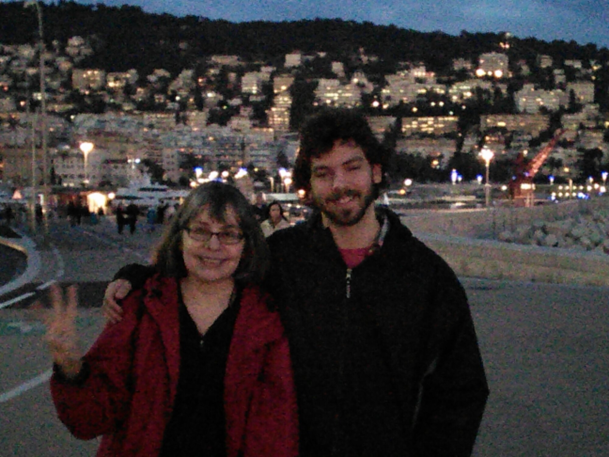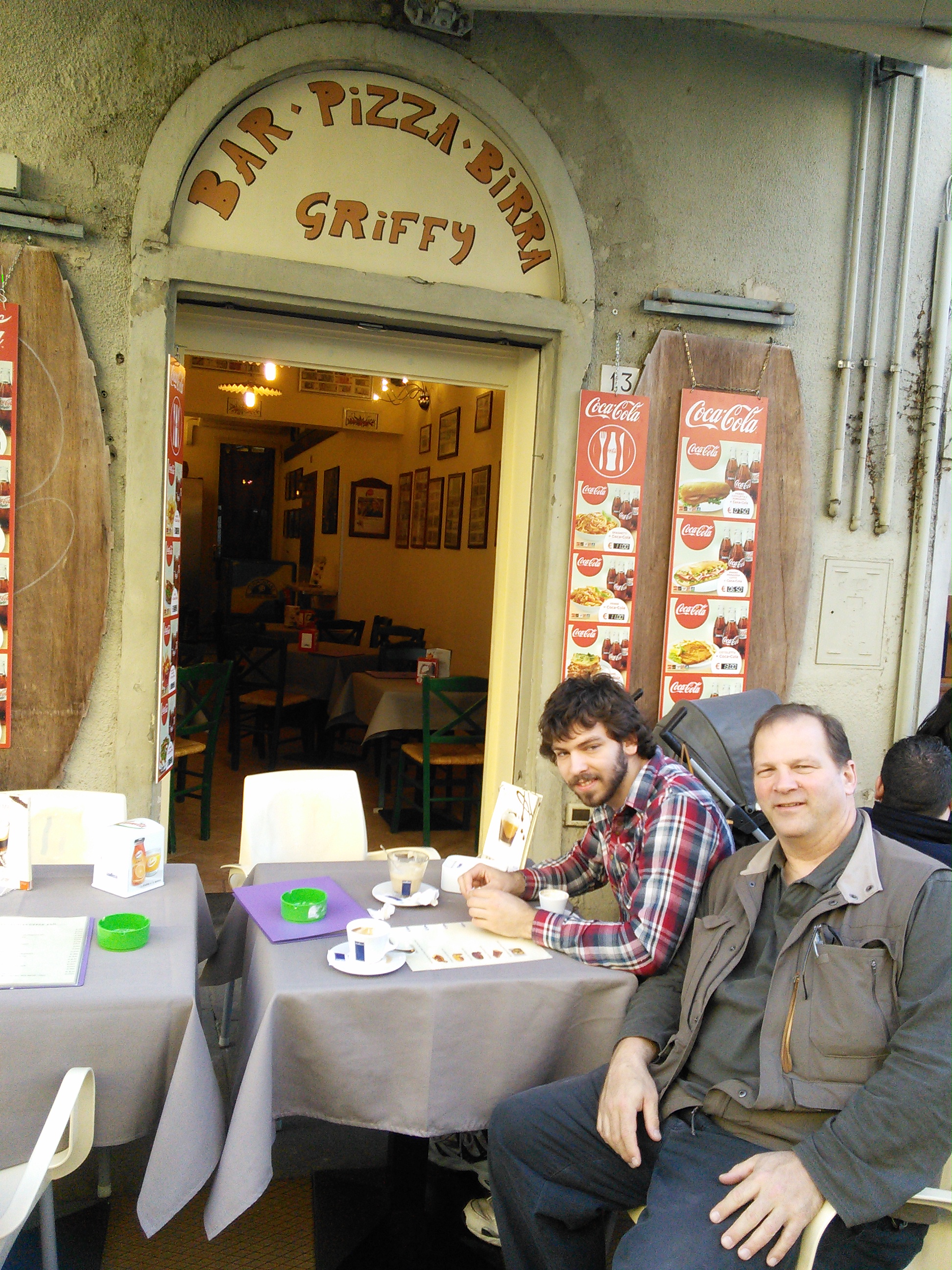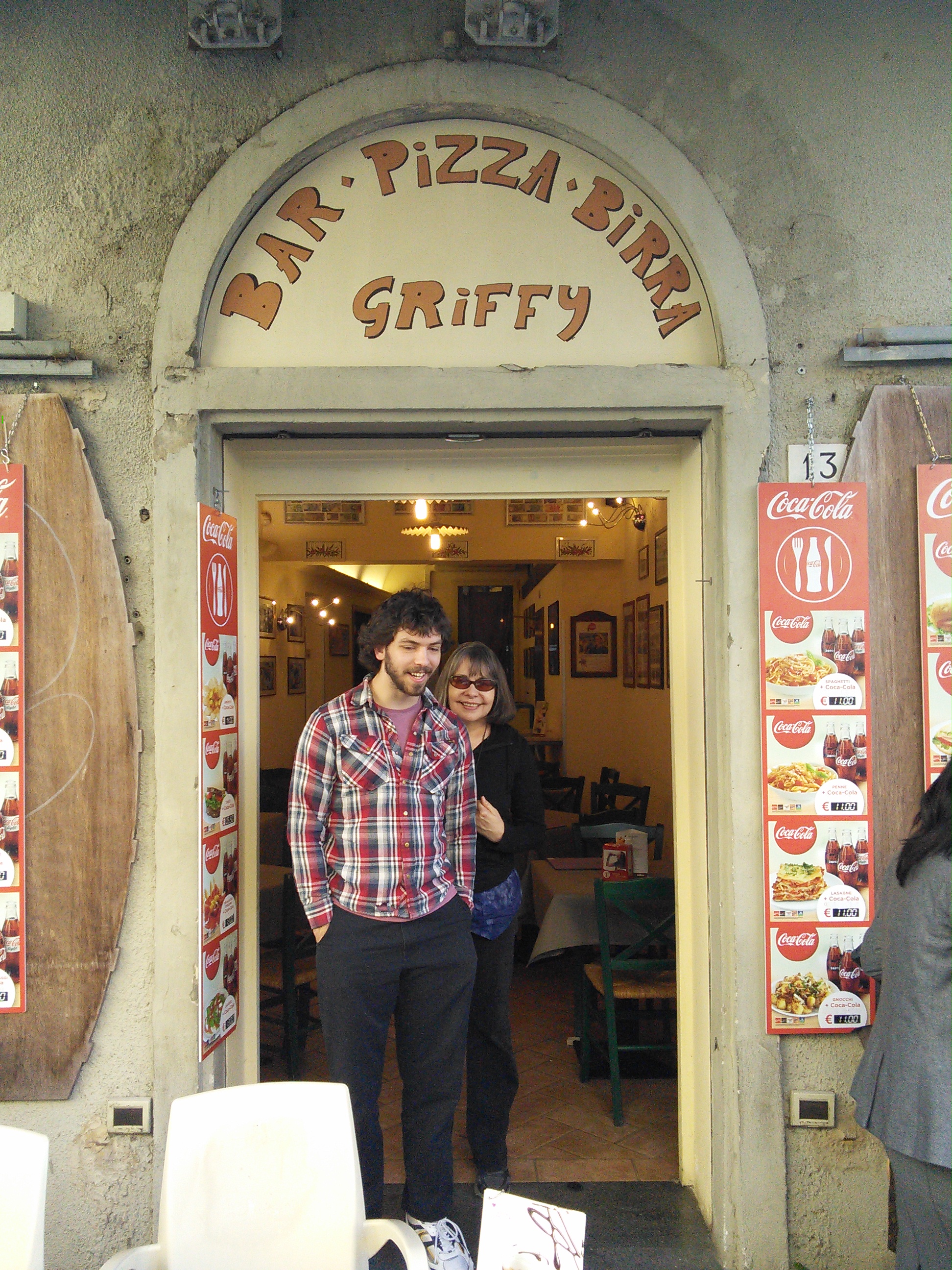 Next we decided to check out a little hilltown near Montepuclaino (Lucca, whose flat we are renting, had recommendded it and a restaurant there to us). We arrived at Montichello around 5:30- and had some wine and bruschetta at La Porta (the restaurant). Dinner was not served until 7:30 so the very kind owner of the restaurant told us to take a walk around town and then come back and we could have some more wine and appetizers and dinner would be just abvout ready. She didn’t want us to pay for what we’d just eaten/drank until later after dinner (Italians are sooo trusting_).. So we went for a leisurely walk around the beautiful town, met a couple of cats (cats seemed to be very popular in Italy) and wandered back to the restaurant.We had a sumptuous meal, with more bruschetta, gnocchi, ravioli, citi, white beans and heavenly Fiorentina steak -and, of course, much wine. 🙂
