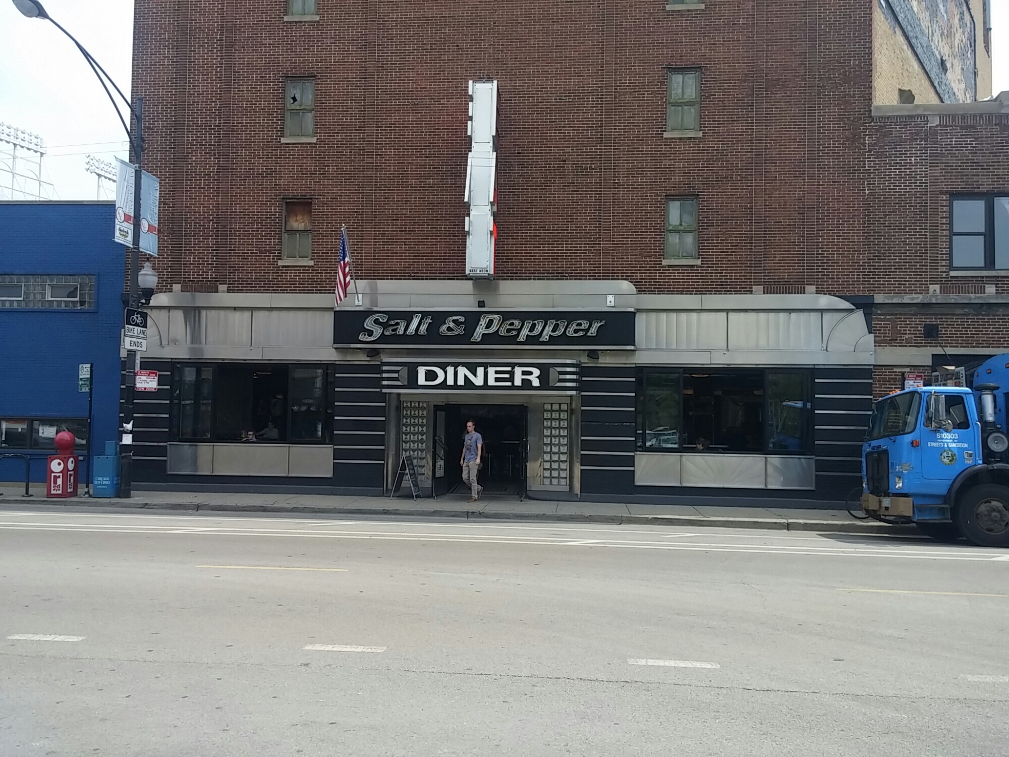 Also I notice that there isnt as much prominant advertising as in other stadiums. The stadium was packed today with both white sox and cub fans. Actually when the White sox won I bet half the crowd stood up and cheered. We started the day getting close to Wrigley field and finding a good place for breakfast. We found a classic diner for breakfast.