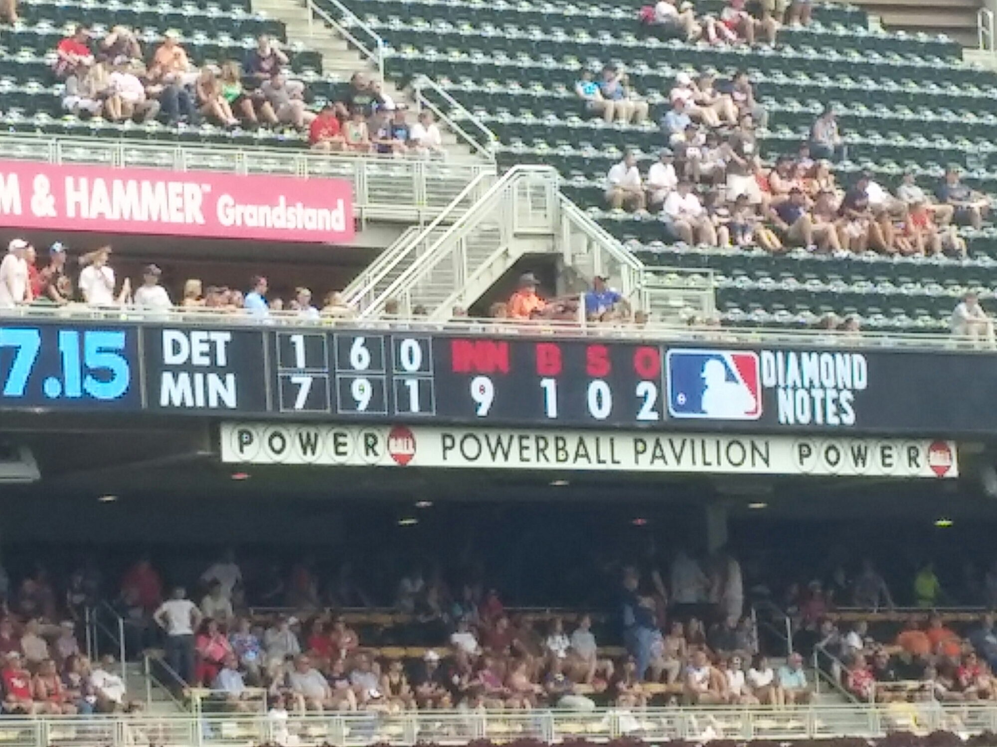 It was a hot n humid day with the possibilty of rain n snow later inthe day. We sat next to a Detroit fan with about 8 loud lady minnesota fans sitting right behind us … The minnesota twins acored 2 in the first and 4 more in the 5 to run away with the game.