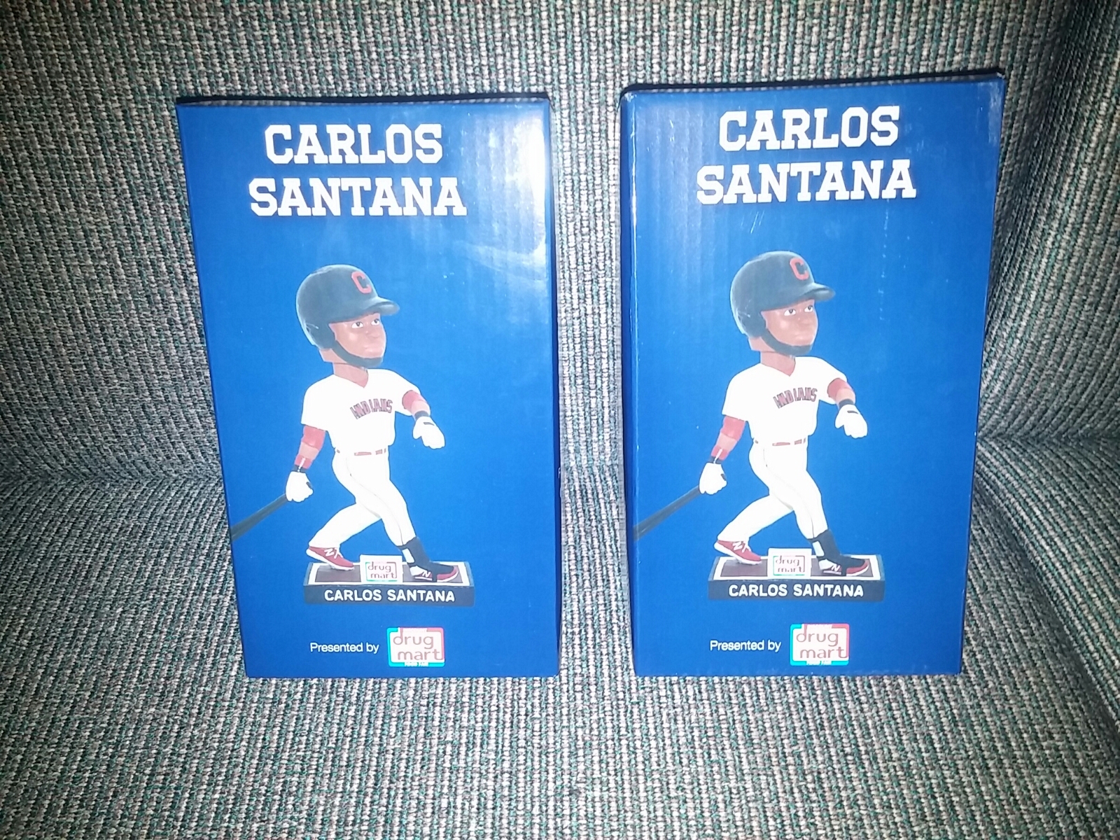 Well its really happpened. Ben forgot his bobble head guy. We each got a Carlos Santana bobble head at the Cleveland Indians game. Well I wasnt sure how I was gonna get mine home. Now I am not sure how I am gonna get both of them home. Take a nice long look. This may be the last you see of the Carlos Santana bobble head guys.